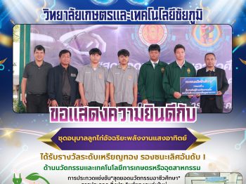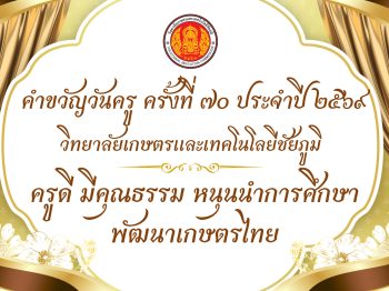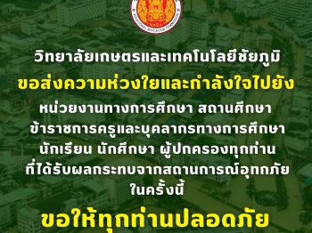 น้อมสำนึกในพระมหากรุณาธิคุณเป็นล้นพ้นอันหาที่สุดมิได้ ข้าพระพุทธเจ้า คณะผู้บริหาร คณะครู และบุคลากรทางการศึกษา วิทยาลัยเกษตรและเทคโนโลยีชัยภูมิ