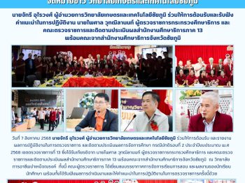 ร่วมให้การต้อนรับและรับฟังคำแนะนำในการปฏิบัติงาน นายไพศาล วุทฒิลานนท์ ผู้ตรวจราชการกระทรวงศึกษาธิการ และคณะตรวจราชการและติดตามประเมินผล สำนักงานศึกษาธิการภาค 13 พร้อมคณะจากสำนักงานศึกษาธิการจังหวัดชัยภูมิ 7 ส.ค. 256830 ส.ค. 2025admin siteกิจกรรมภายใน