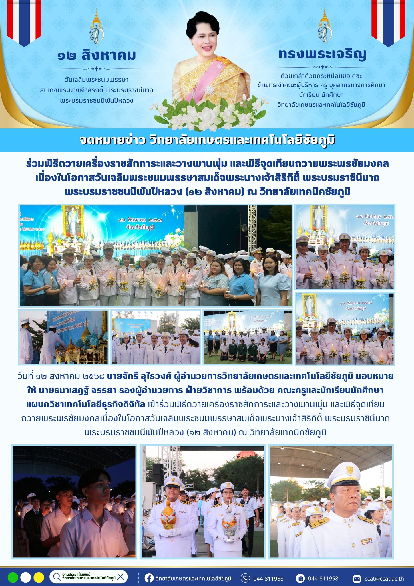 ร่วมพิธีถวายเครื่องราชสักการะและวางพานพุ่ม และพิธีจุดเทียนถวายพระพรชัยมงคล เนื่องในโอกาสวันเฉลิมพระชนมพรรษาสมเด็จพระนางเจ้าสิริกิติ์ พระบรมราชินีนาถ พระบรมราชชนนีพันปีหลวง (๑๒ สิงหาคม) ณ วิทยาลัยเทคนิคชัยภูมิ 12 ส.ค. 256830 ส.ค. 2025admin siteกิจกรรมภายใน