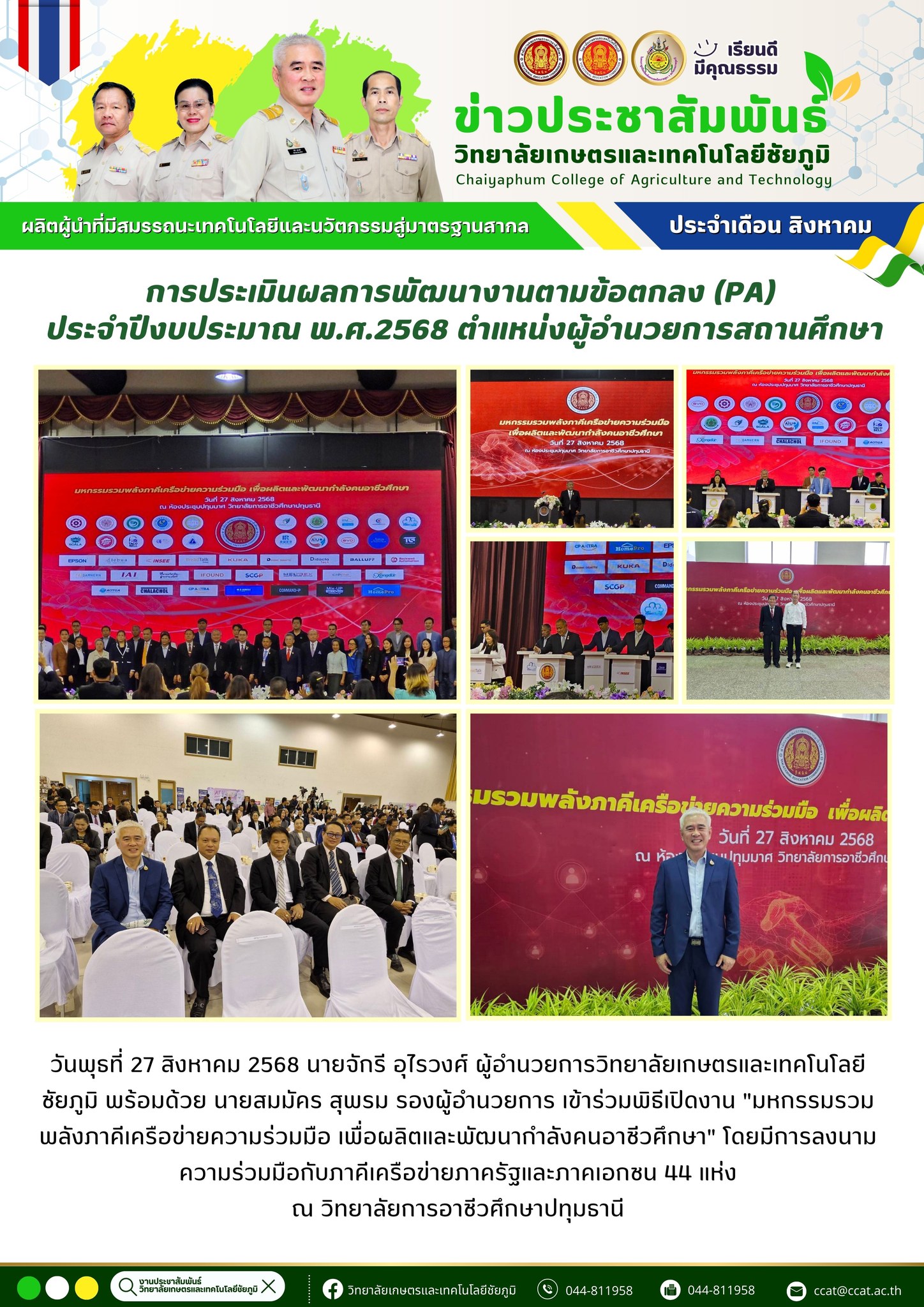 เข้าร่วมพิธีเปิดงาน “มหกรรมรวมพลังภาคีเครือข่ายความร่วมมือ เพื่อผลิตและพัฒนากำลังคนอาชีวศึกษา” โดยมีการลงนามความร่วมมือกับภาคีเครือข่าย ภาครัฐและภาคเอกชน 44 แห่ง 27 ส.ค. 25684 ก.ย. 2025admin siteกิจกรรมภายใน