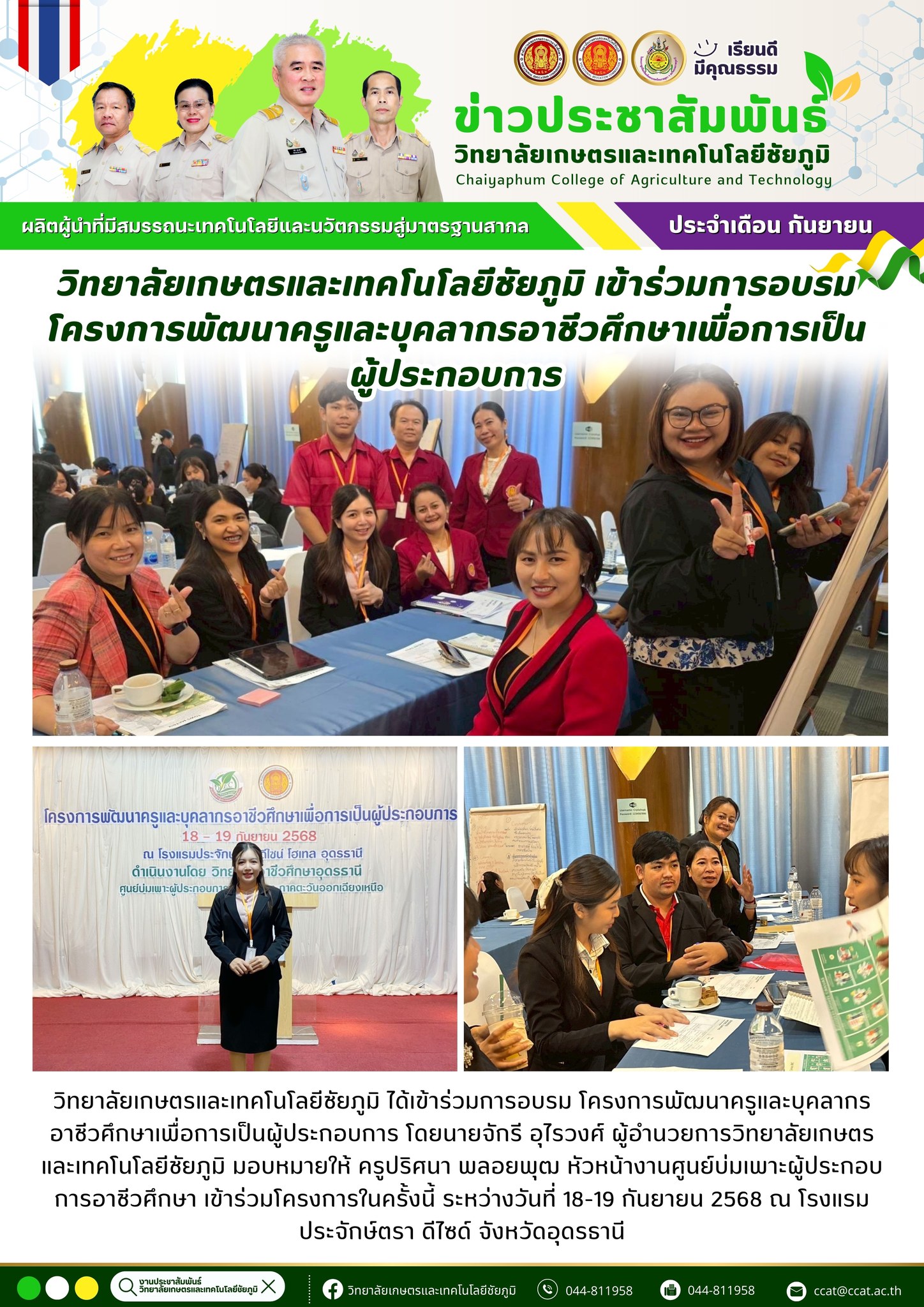 เข้าร่วมการอบรม โครงการพัฒนาครูและบุคลากรอาชีวศึกษาเพื่อการเป็นผู้ประกอบการ 19 ก.ย. 256823 ก.ย. 2025admin siteกิจกรรมภายใน