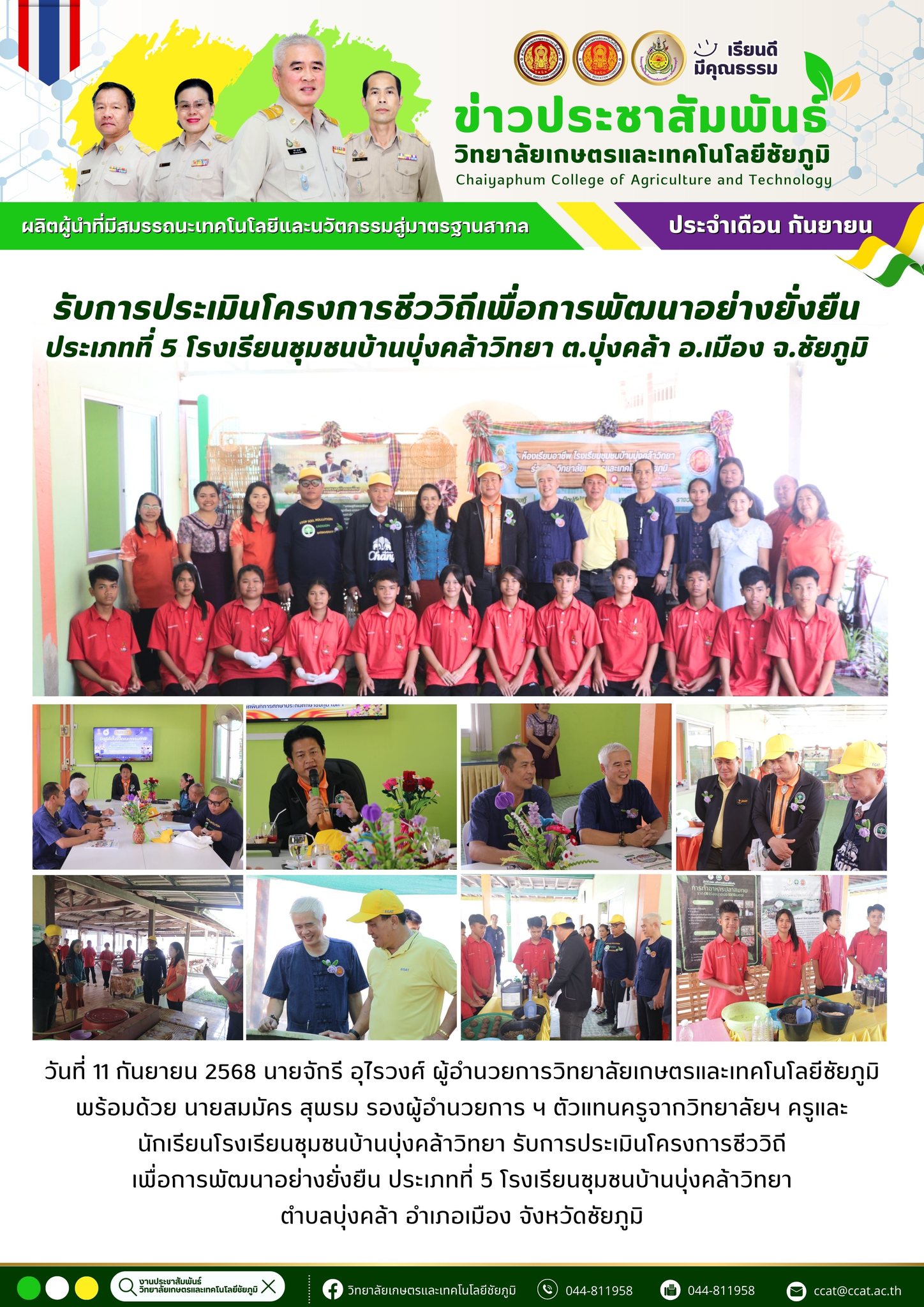 รับการประเมินโครงการชีววิถีเพื่อการพัฒนาอย่างยั่งยืน ประเภทที่ 5 โรงเรียนชุมชนบ้านบุ่งคล้าวิทยา ต.บุ่งคล้า อ.เมือง จ.ชัยภูมิ 11 ก.ย. 256823 ก.ย. 2025admin siteกิจกรรมภายใน