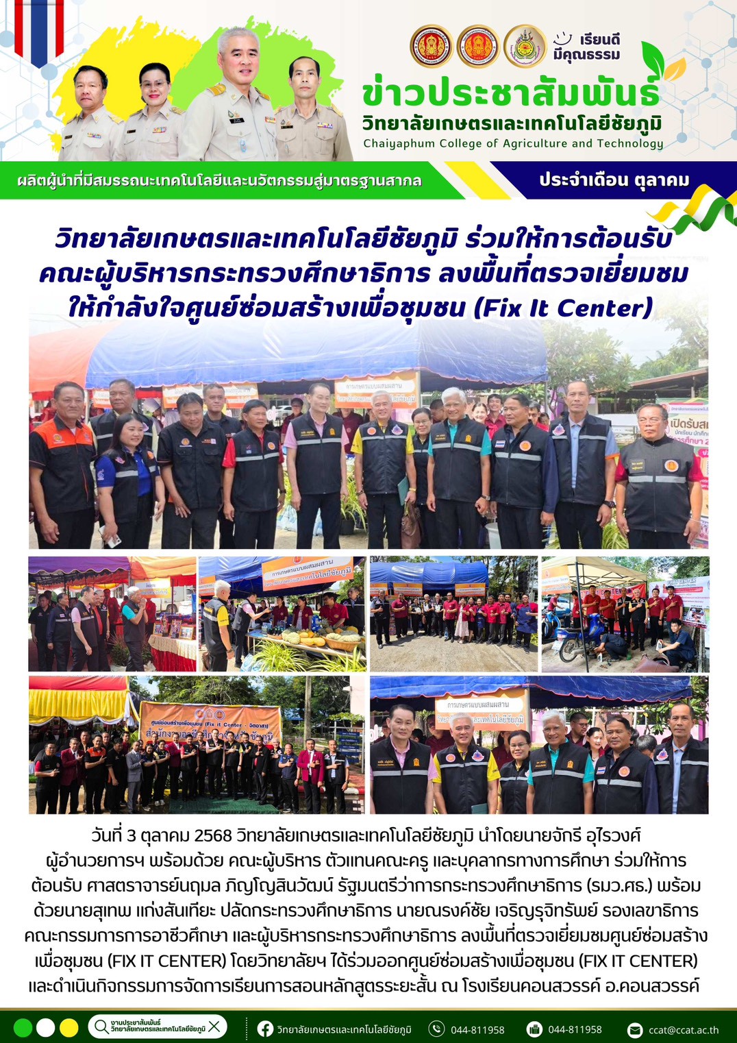 ต้อนรับ ศาสตราจารย์นฤมล ภิญโญสินวัฒน์ รัฐมนตรีว่าการกระทรวงศึกษาธิการ (รมว.ศธ.) พร้อมด้วยนายสุเทพ แก่งสันเทียะ ปลัดกระทรวงศึกษาธิการ นายณรงค์ชัย เจริญรุจิทรัพย์ รองเลขาธิการคณะกรรมการการอาชีวศึกษา และผู้บริหารกระทรวงศึกษาธิการ ลงพื้นที่ตรวจเยี่ยมชมศูนย์ซ่อมสร้างเพื่อชุมชน (Fix It Center) 3 ต.ค. 25684 ต.ค. 2025admin siteกิจกรรมภายใน รับชมรูปภาพเพิ่มเติม
