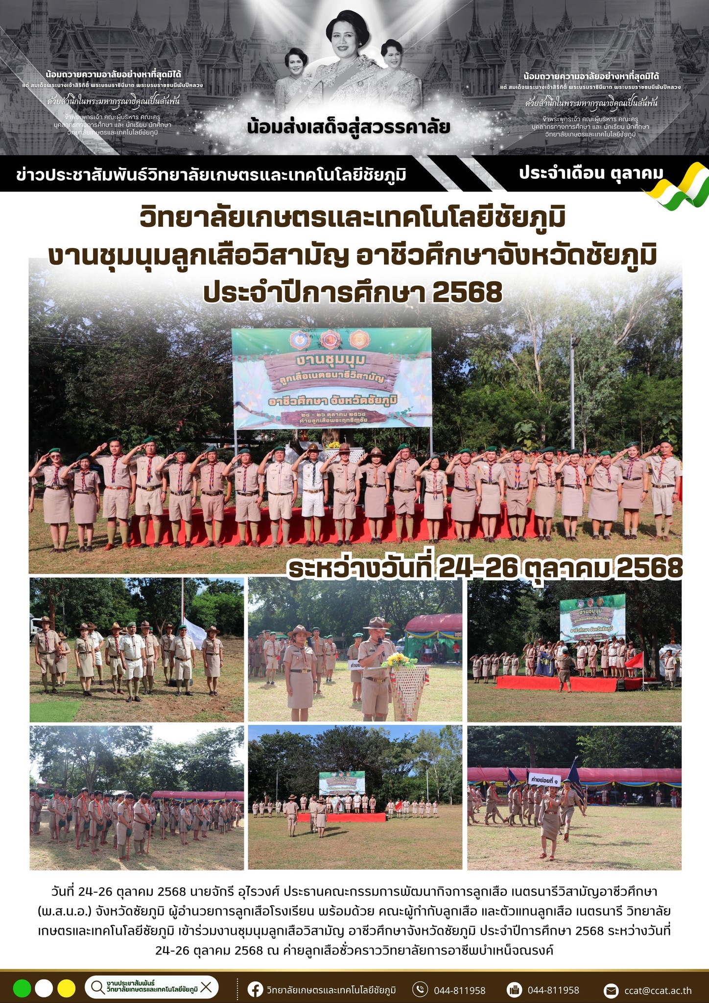 น้อมสำนึกในพระมหากรุณาธิคุณเป็นล้นพ้นอันหาที่สุดมิได้ ข้าพระพุทธเจ้า คณะผู้บริหาร คณะครู และบุคลากรทางการศึกษา วิทยาลัยเกษตรและเทคโนโลยีชัยภูมิ