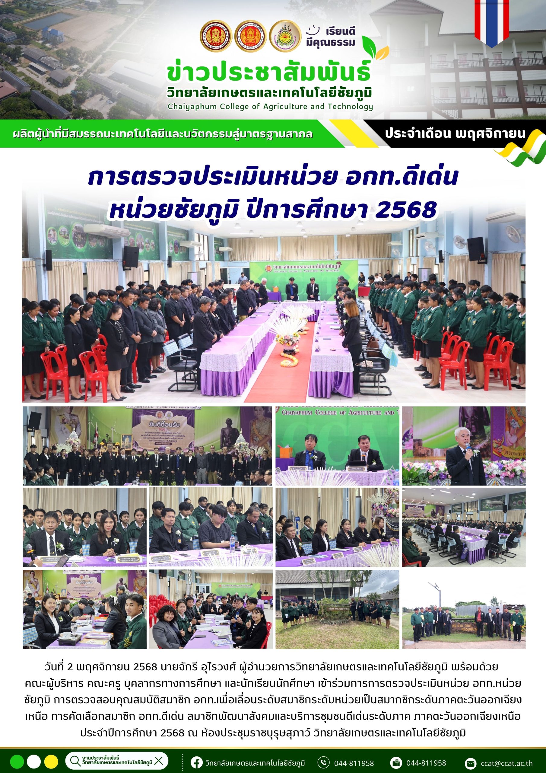 การตรวจประเมินหน่วย อกท.ดีเด่น หน่วยชัยภูมิ ประจำปีการศึกษา 2568 3 พ.ย. 2568admin siteกิจกรรมภายใน, อกท รับชมรูปภาพกิจกรรมเพิ่มเติม