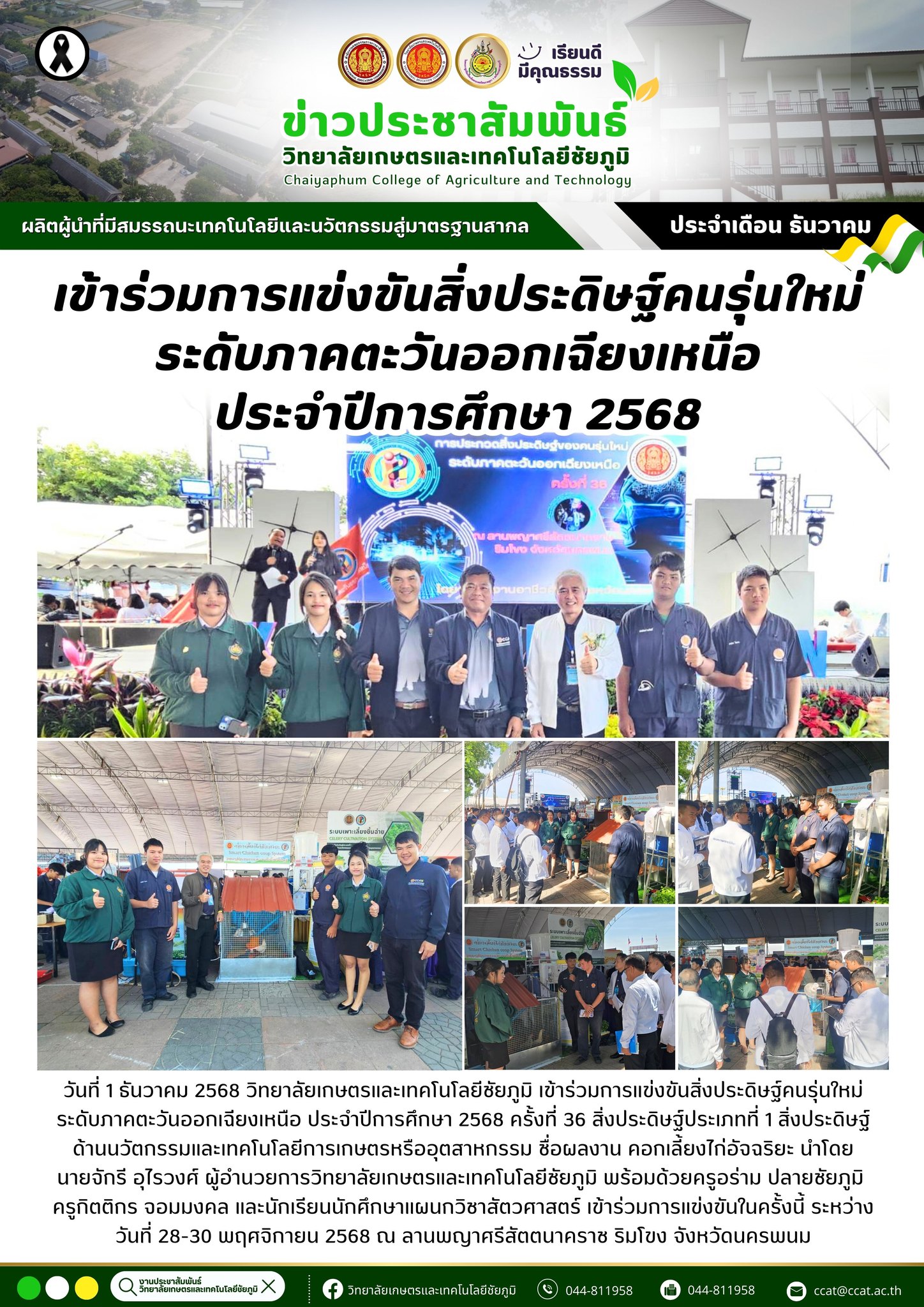 เข้าร่วมการแข่งขันสิ่งประดิษฐ์คนรุ่นใหม่ ระดับภาคตะวันออกเฉียงเหนือ ประจำปีการศึกษา 2568 1 ธ.ค. 25685 ธ.ค. 2025admin siteกิจกรรมภายใน
