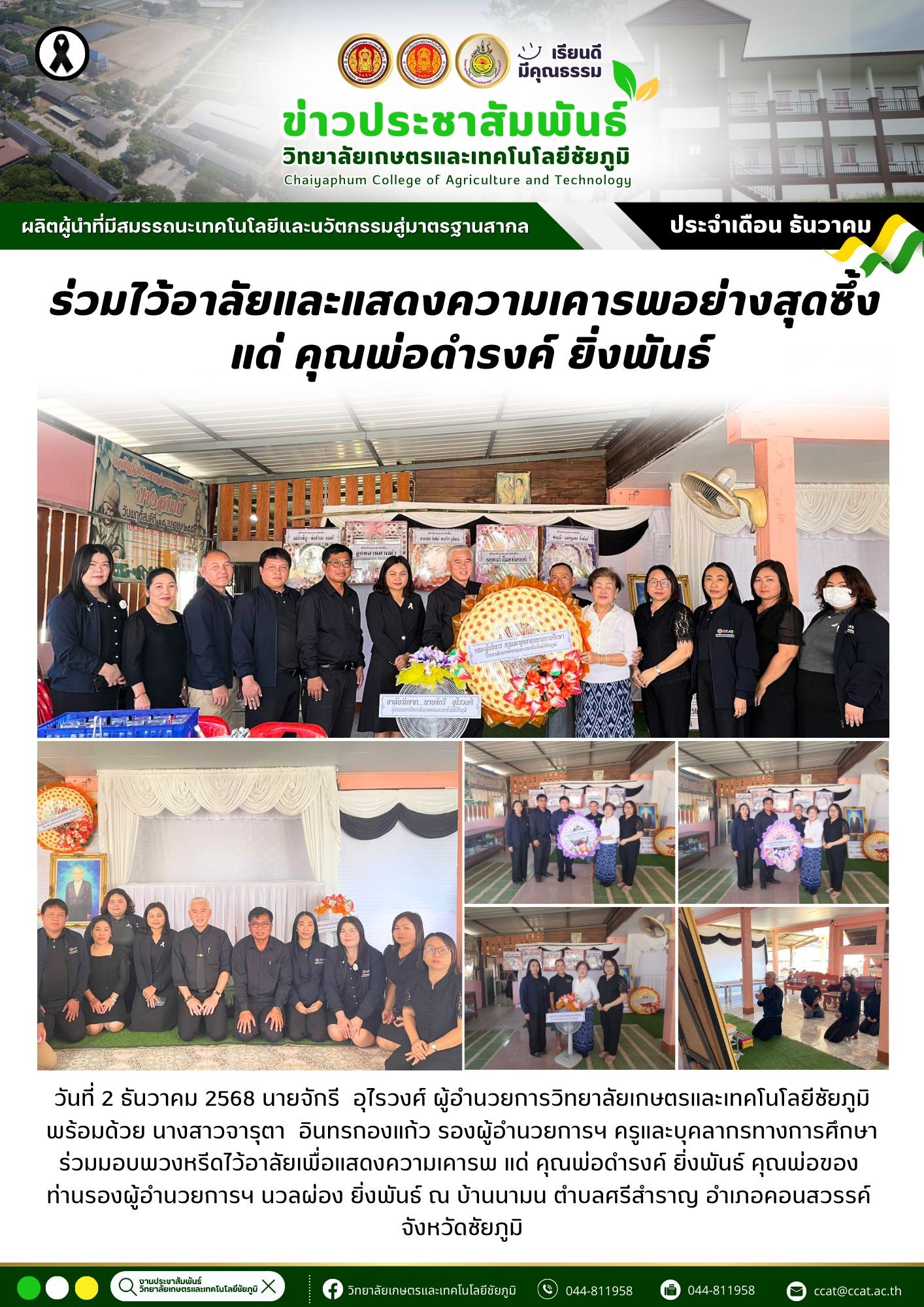 วิทยาลัยเกษตรและเทคโนโลยีชัยภูมิ ร่วมไว้อาลัยและแสดงความเคารพอย่างสุดซึ้ง แด่ คุณพ่อดำรงค์ ยิ่งพันธ์ 2 ธ.ค. 25685 ธ.ค. 2025admin siteข่าวสาร