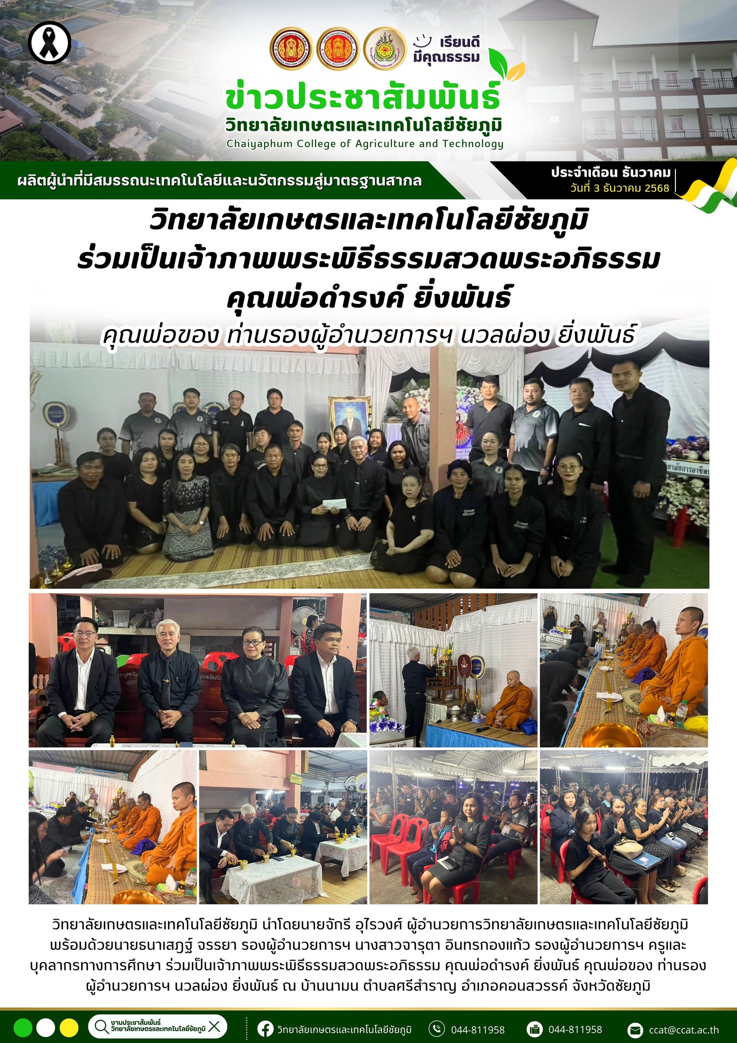 วิทยาลัยเกษตรและเทคโนโลยีชัยภูมิ ร่วมเป็นเจ้าภาพพระพิธีธรรมสวดพระอภิธรรม คุณพ่อดำรงค์ ยิ่งพันธ์ คุณพ่อของ ท่านรองผู้อำนวยการฯ นวลผ่อง ยิ่งพันธ์ 3 ธ.ค. 25685 ธ.ค. 2025admin siteข่าวสาร