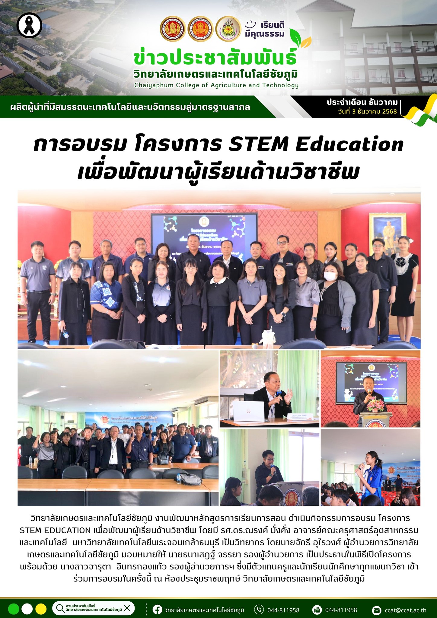 อบรม โครงการ STEM Education เพื่อพัฒนาผู้เรียนด้านวิชาชีพ 3 ธ.ค. 25685 ธ.ค. 2025admin siteกิจกรรมภายใน รับชมรูปภาพกิจกรรมเพิ่มเติม