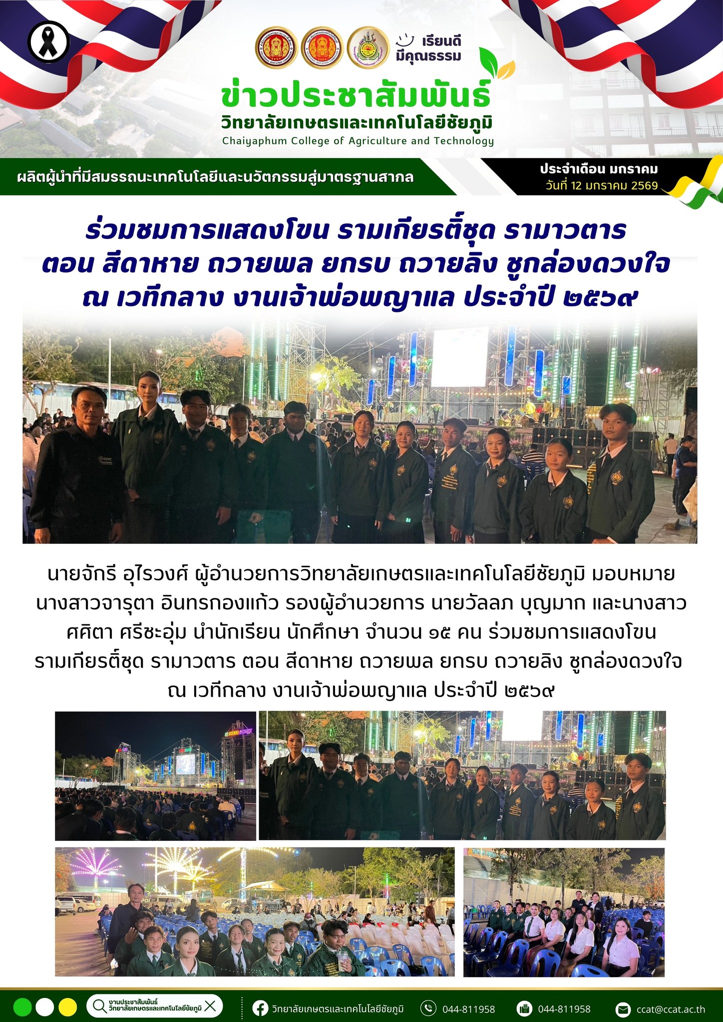ร่วมชมการแสดงโขน รามเกียรติ์ชุด รามาวตาร ตอน สีดาหาย ถวายพล ยกรบ ถวายลิง ชูกล่องดวงใจ ณ เวทีกลาง งานเจ้าพ่อพญาแล ประจำปี ๒๕๖๙ 12 ม.ค. 256917 ม.ค. 2026admin siteกิจกรรมภายใน