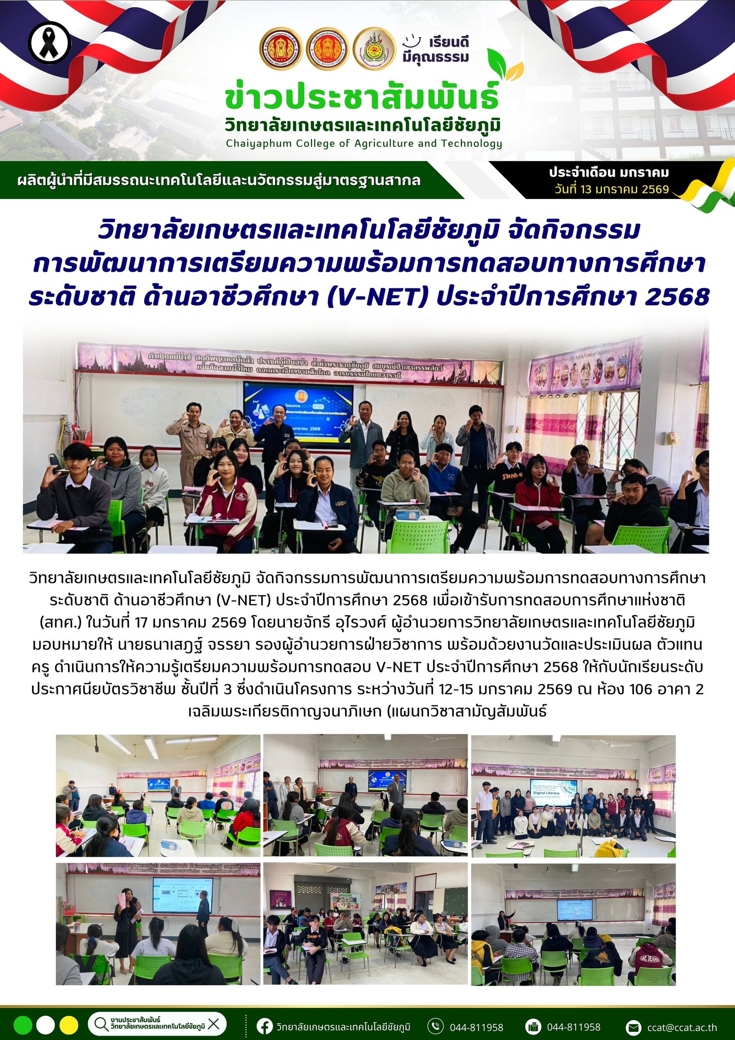 กิจกรรมการพัฒนาการเตรียมความพร้อมการทดสอบทางการศึกษา ระดับชาติ ด้านอาชีวศึกษา (V-NET) ประจำปีการศึกษา 2568 13 ม.ค. 256917 ม.ค. 2026admin siteกิจกรรมภายใน