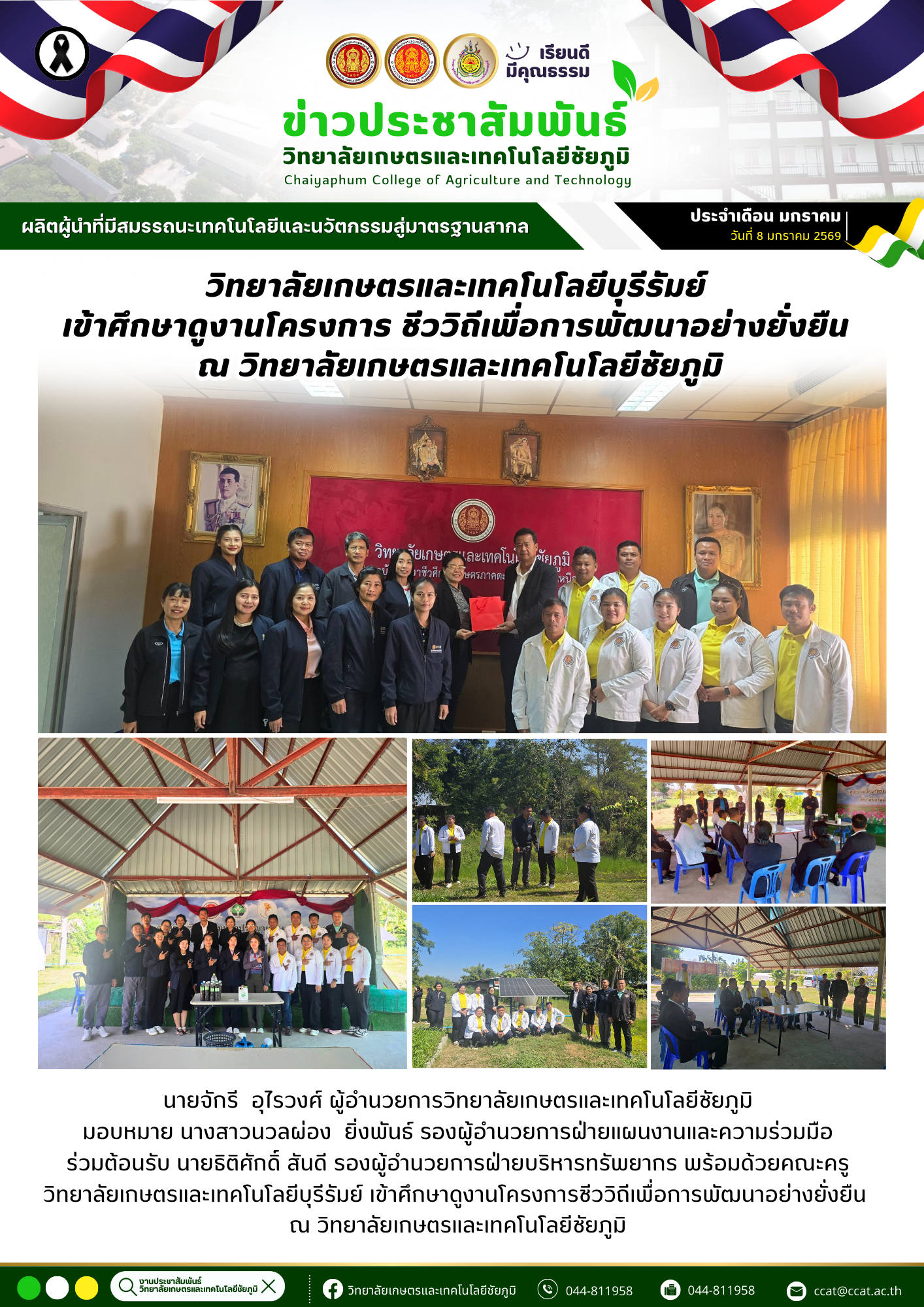 วิทยาลัยเกษตรและเทคโนโลยีบุรีรัมย์ เข้าศึกษาดูงานโครงการ ชีววิถีเพื่อการพัฒนาอย่างยั่งยืน 8 ม.ค. 256917 ม.ค. 2026admin siteกิจกรรมภายใน