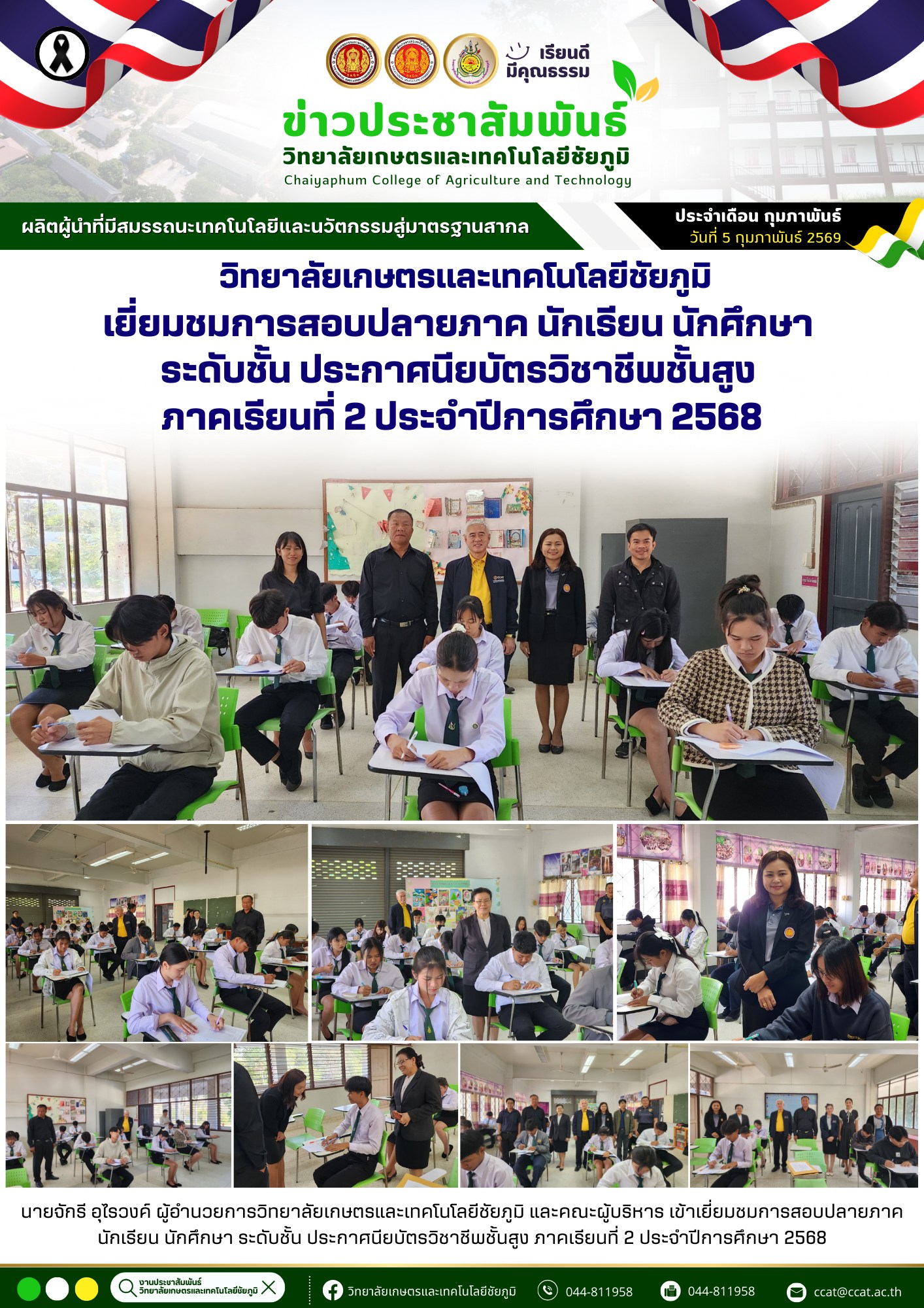 การสอบปลายภาค นักเรียน นักศึกษา ระดับชั้น ประกาศนียบัตรวิชาชีพชั้นสูง ภาคเรียนที่ 2 ประจำปีการศึกษา 2568 6 ก.พ. 2569admin siteกิจกรรมภายใน
