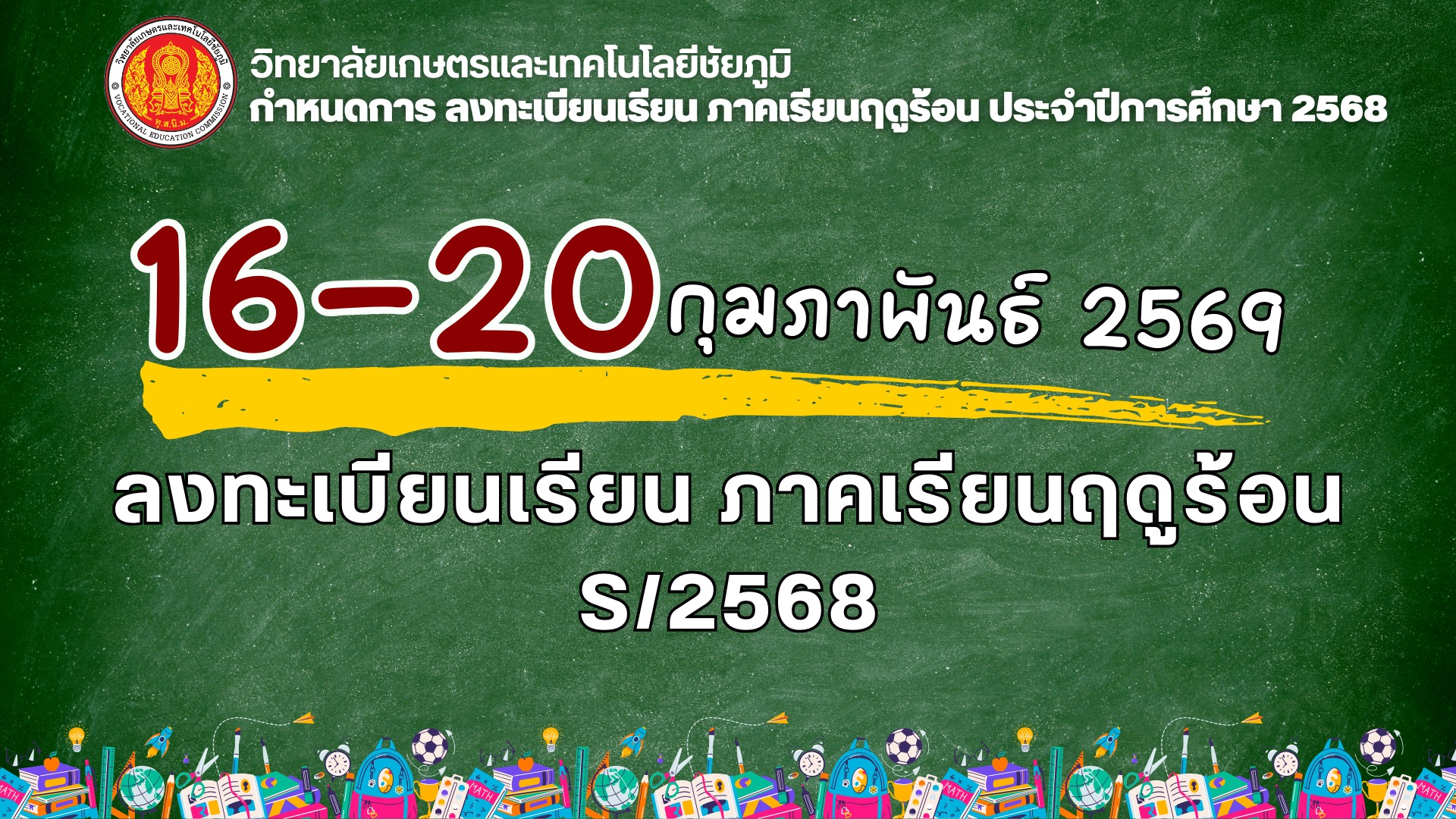ประชาสัมพันธ์ถึงนักเรียน นักศึกษา ลงทะบียนเรียนภาคเรียนฤดูร้อน S/2568 11 ก.พ. 256911 ก.พ. 2026admin siteข่าวสาร