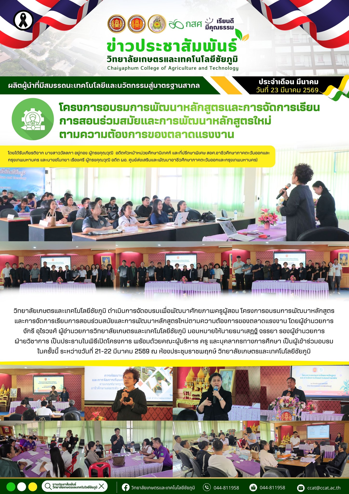 โครงการอบรมการพัฒนาหลักสูตรและการจัด การเรียการสอนร่วมสมัยและการพัฒนาหลักสูตรใหม่ ตามควมต้องการของตลาดแรงงาน 23 มี.ค. 256929 มี.ค. 2026admin siteกองทุนความเสมอภาคทางการศึกษา (กสศ.) รูปภาพกิจกรรมเพิ่มเติม